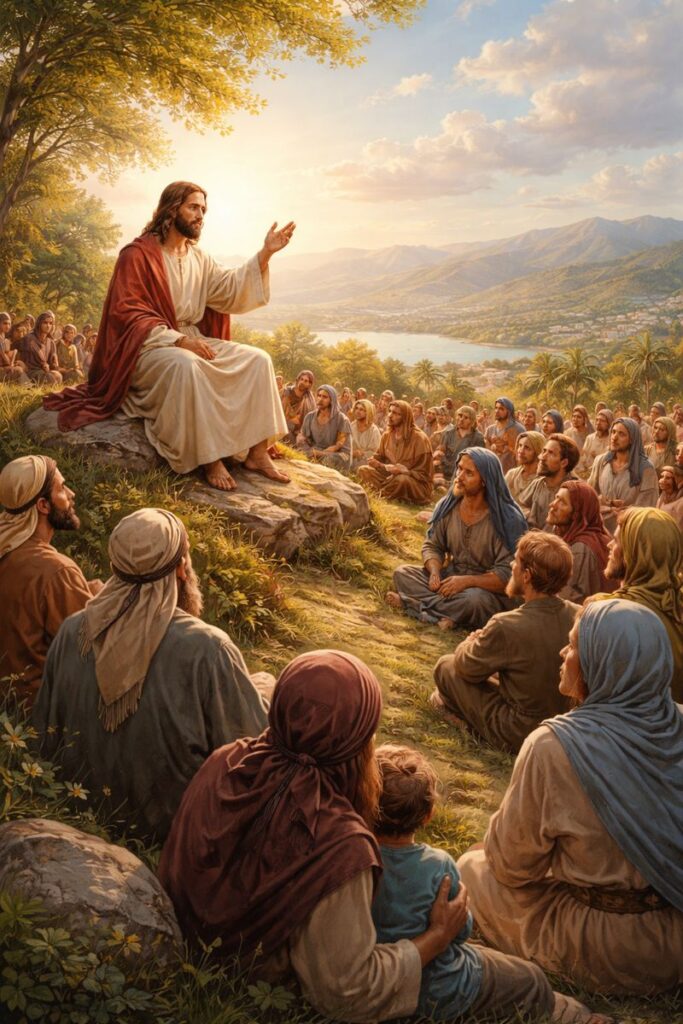 Jezus rozpoczyna swoją pierwszą wielką mowę w Ewangelii św. Mateusza, zwaną kazaniem na górze. Tak jak kiedyś Mojżesz na Synaju ogłaszał Dekalog, tak teraz Jezus na Górze Błogosławieństw proklamuje uroczyście nowe prawo Ewangelii. Odwraca ono ludzką logikę sukcesu. Jezus nie mówi: błogosławieni silni, bogaci, wpływowi. Mówi dokładnie odwrotnie: błogosławieni – czyli dosłownie „szczęśliwi” ci, których świat często uznaje za słabych i przegranych.